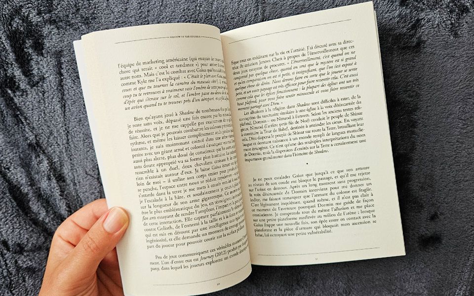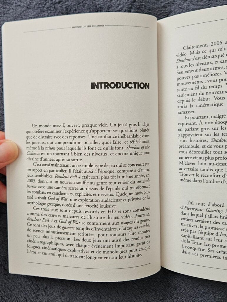 J’apprécie beaucoup le concept des livres Gaming Legends qui consiste à mélanger souvenirs personnels et analyse du jeu. Il se distingue aussi par sa concision bienvenue. Avec ses 150 pages, ce livre offre une lecture accessible et agréable, idéale pour celles et ceux qui préfèrent les ouvrages synthétiques aux longues analyses exhaustives. Pour ma part, ce type de format me permet de souffler entre deux lectures plus volumineuses ou exigeantes. En refermant ce livre, je ne peux pas dire que mon avis sur Shadow of the Colossus a totalement changé, mais il s’est enrichi. La lecture m’a permis de mieux comprendre ce qui rend ce titre si particulier et si marquant pour beaucoup de joueurs, même si je n’y ai pas trouvé la même magie que l’auteur. Au final, ce volume de Gaming Legends m’a surtout permis de redécouvrir le jeu sous un autre angle, avec un regard plus attentif à son intention et à son héritage.